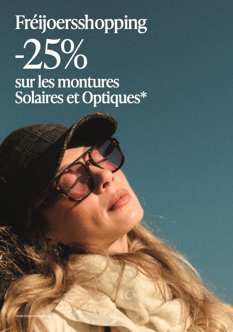 Une offre à ne pas manquer du 20 au 22 mars inclus : -25% sur les montures Solaires et Optiques.