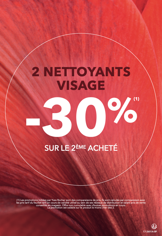 - Nettoyants visage : 1 acheté = le 2ᵉ à -30 % 🧼