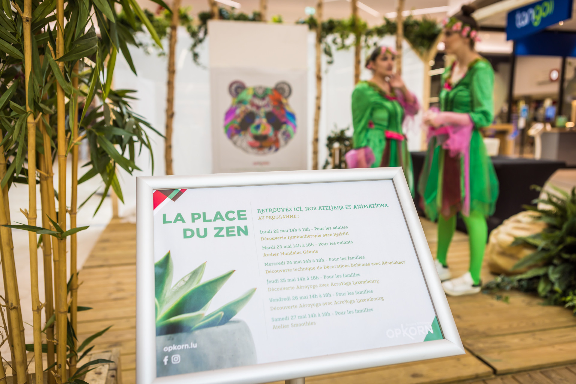 Vous avez pu découvrir : les décorations bohèmes de Adopt a knot par Caroline, l'aéroyoga avec Aeroyoga Luxembourg, la luminothéraphie avec Reikifil, la lithothérapie avec Horizondeco et l'aromathérapie avec l'Éveil des Sens.