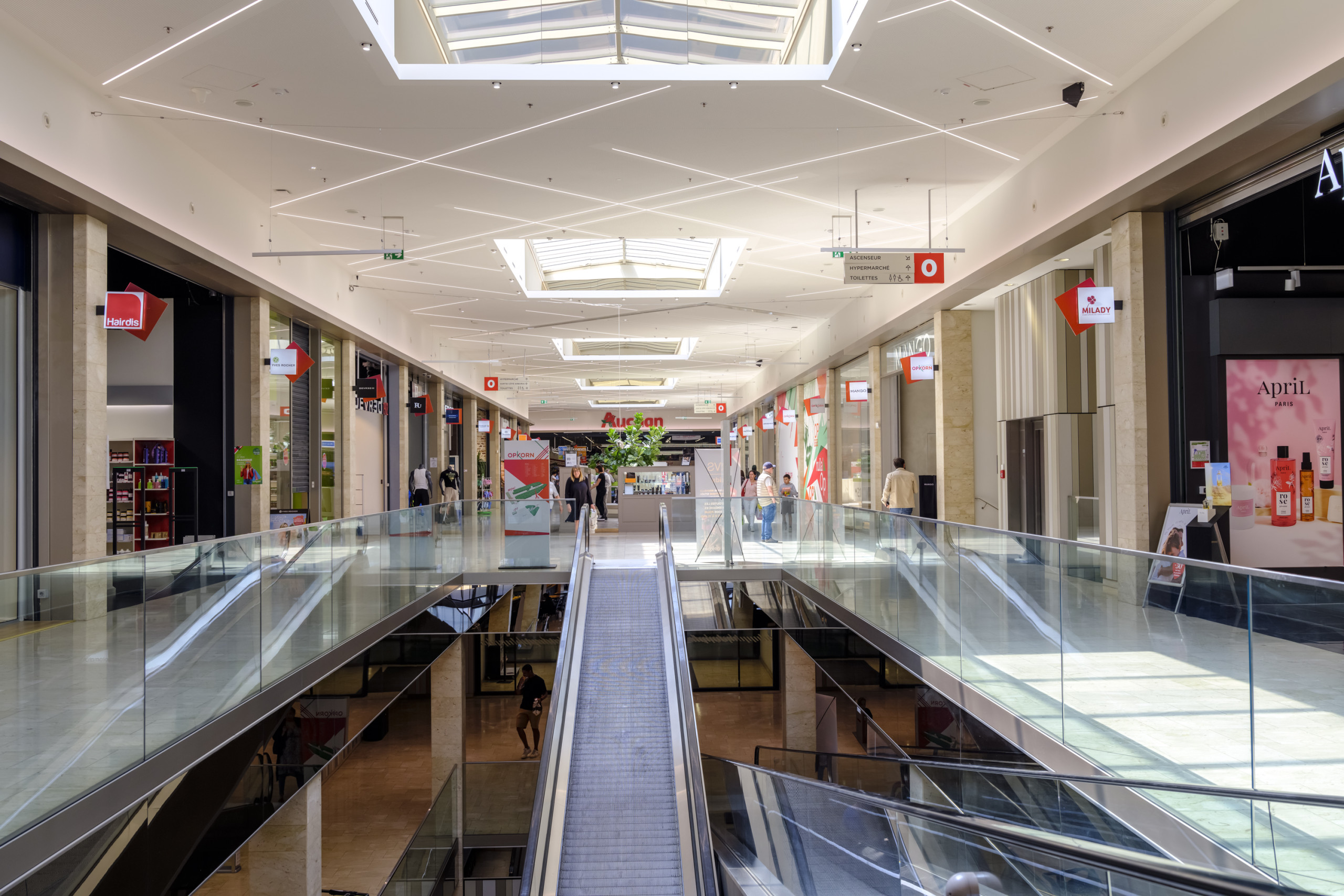 et plus encore ! Le centre commercial OPKORN propose une offre commerciale et gourmande complète, au travers d’un hypermarché Auchan, de 25 boutiques, 2 kiosques et 5 restaurants avec terrasse. Ainsi que de nombreux services pour vous faciliter la vie ! Visualiser toutes